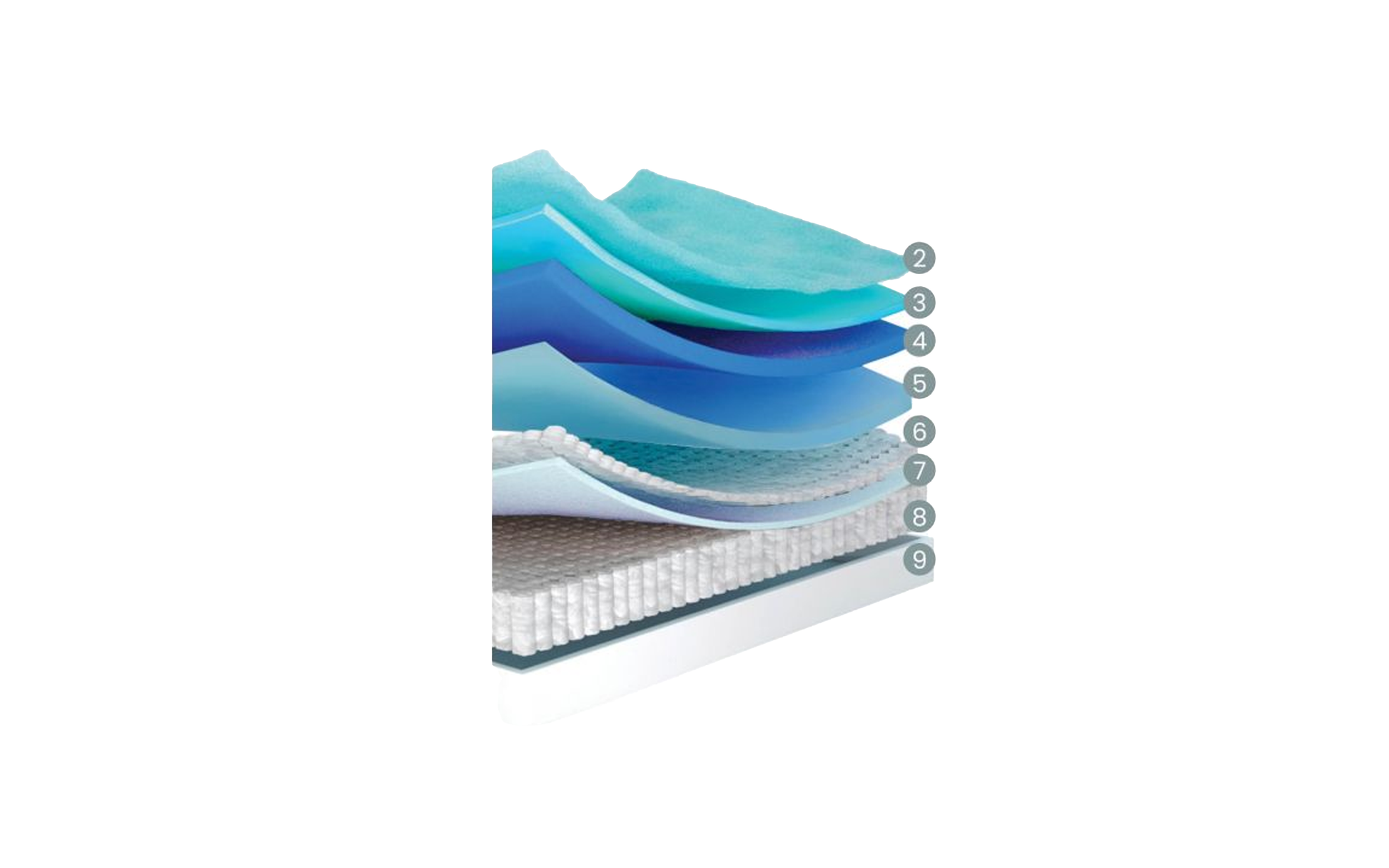A tecnologia Total Protect protege contra humidade, ácaros e bactérias, enquanto o reforço em HR de alta densidade assegura estabilidade e longa durabilidade.